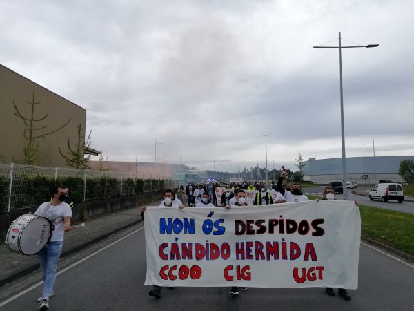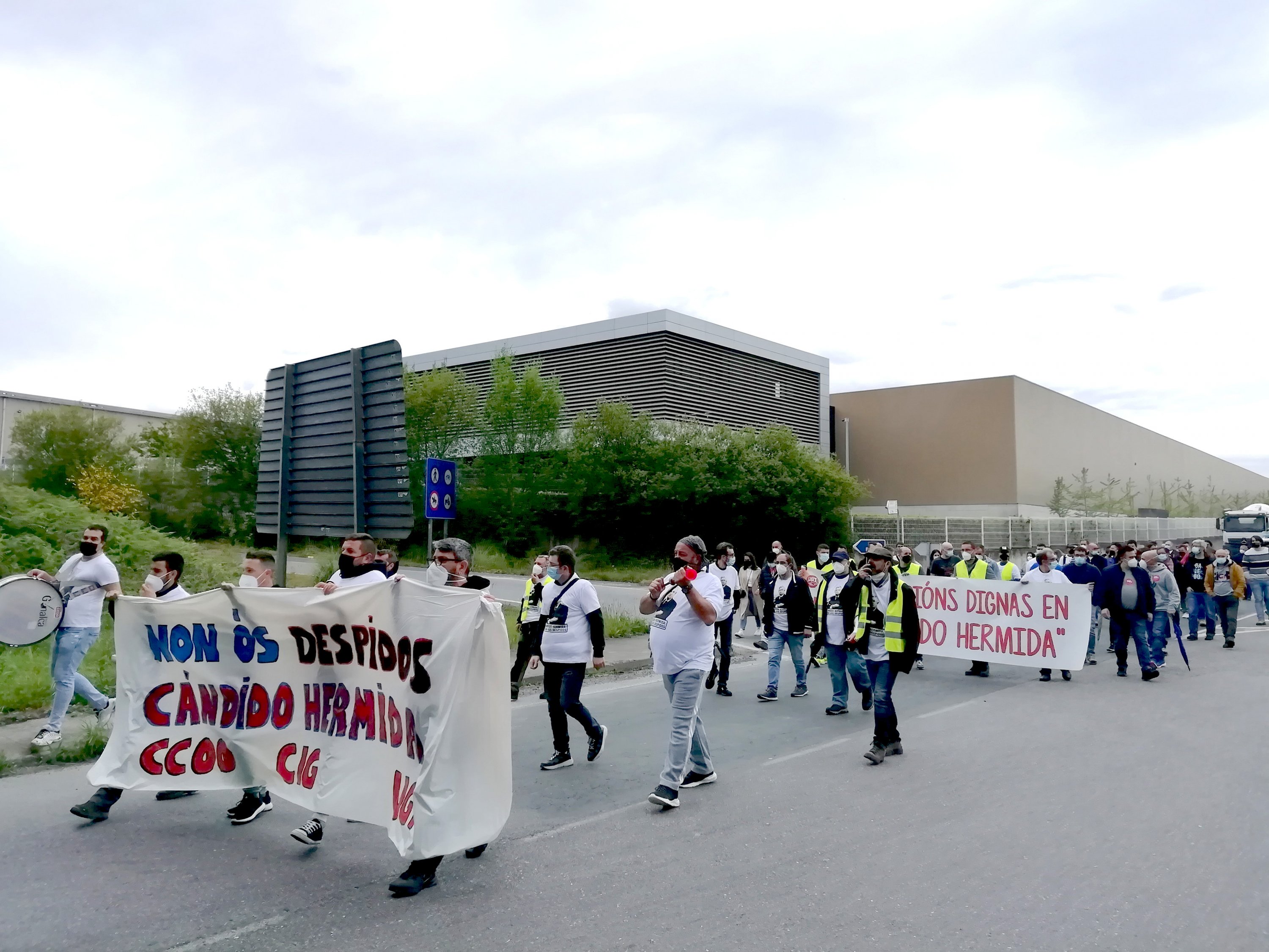 Traballadores do Grupo Cándido Hermida fixeron unha marcha a pé este venres dende a nave da empresa no Polígono do Río do Pozo até o Concello de Narón para esixir a readmisión dos 23 compañeiros despedidos nas distintas empresas da compañía, así como en rexeitamento a posíbeis recortes que a dirección pretenda aplicar nas condicións de traballo.