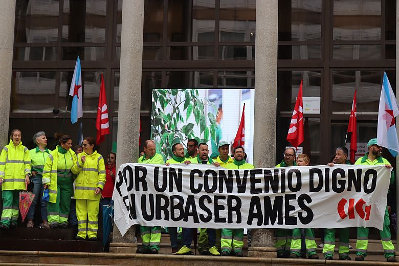 Traballadores de Urbaser concéntranse diante do concello de Ames por un convenio digno
