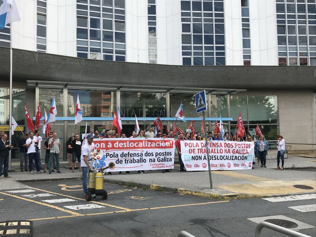 Traballadores/as das contratas de R piden a implicación da Xunta para evitar a deslocalización dos servizos e dos empregos
