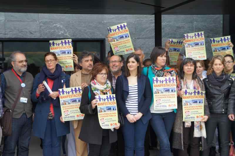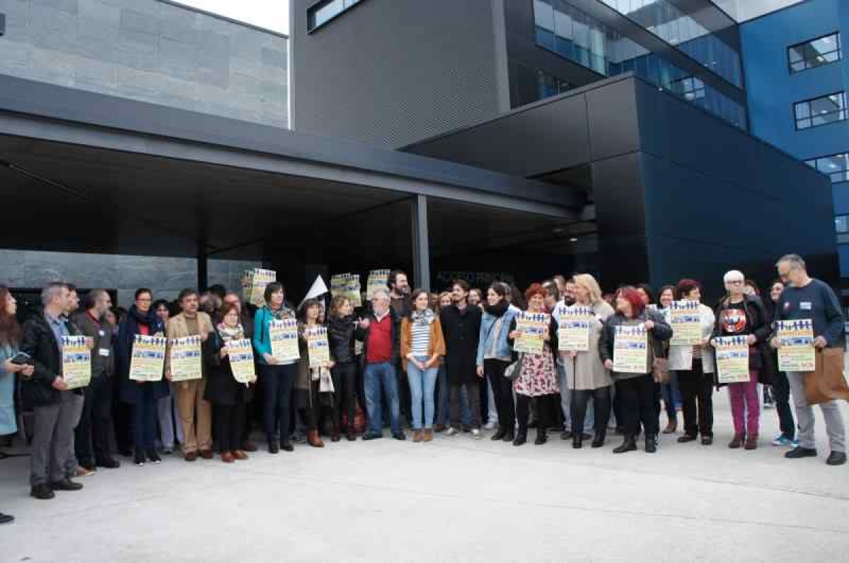 Traballadores/as da sanidade e representantes políticos esixen o rescate público do Cunqueiro cunha concentración no hospital