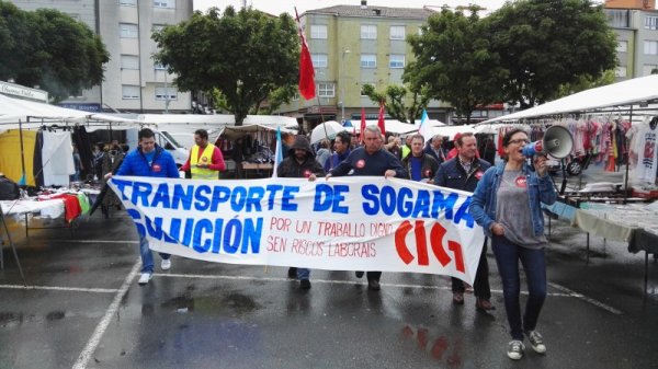 Traballadores/as do transporte de residuos de SOGAMA denuncian polas rúas de Ordes as súas condicións laborais