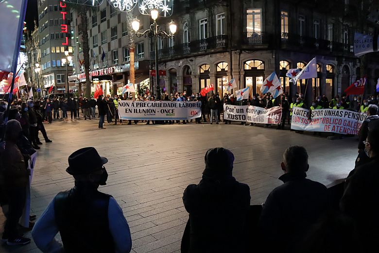 “Esta manifestación é un exemplo máis de que non nos resignamos fronte á grave crise laboral, social e produtiva que padece a comarca de Vigo, de que non quedamos de brazos caídos mentres avanza a desertización industrial que ameaza xa non só o noso futuro senón o presente”. Deste xeito comezou a súa intervención ao remate da marcha o secretario comarcal da CIG-Vigo, Alberto Gonçalves.