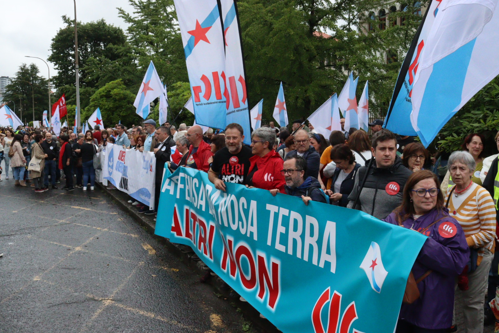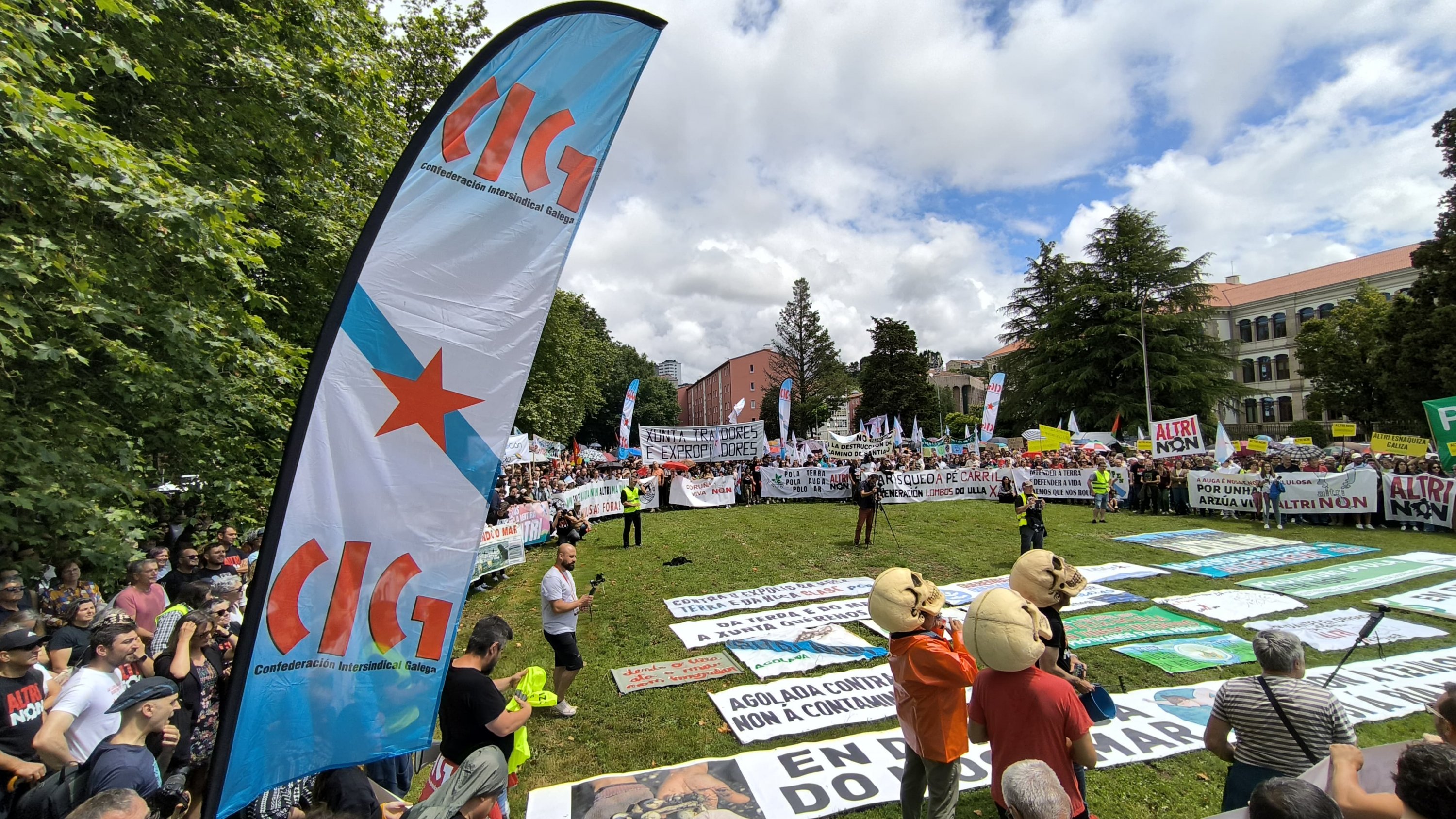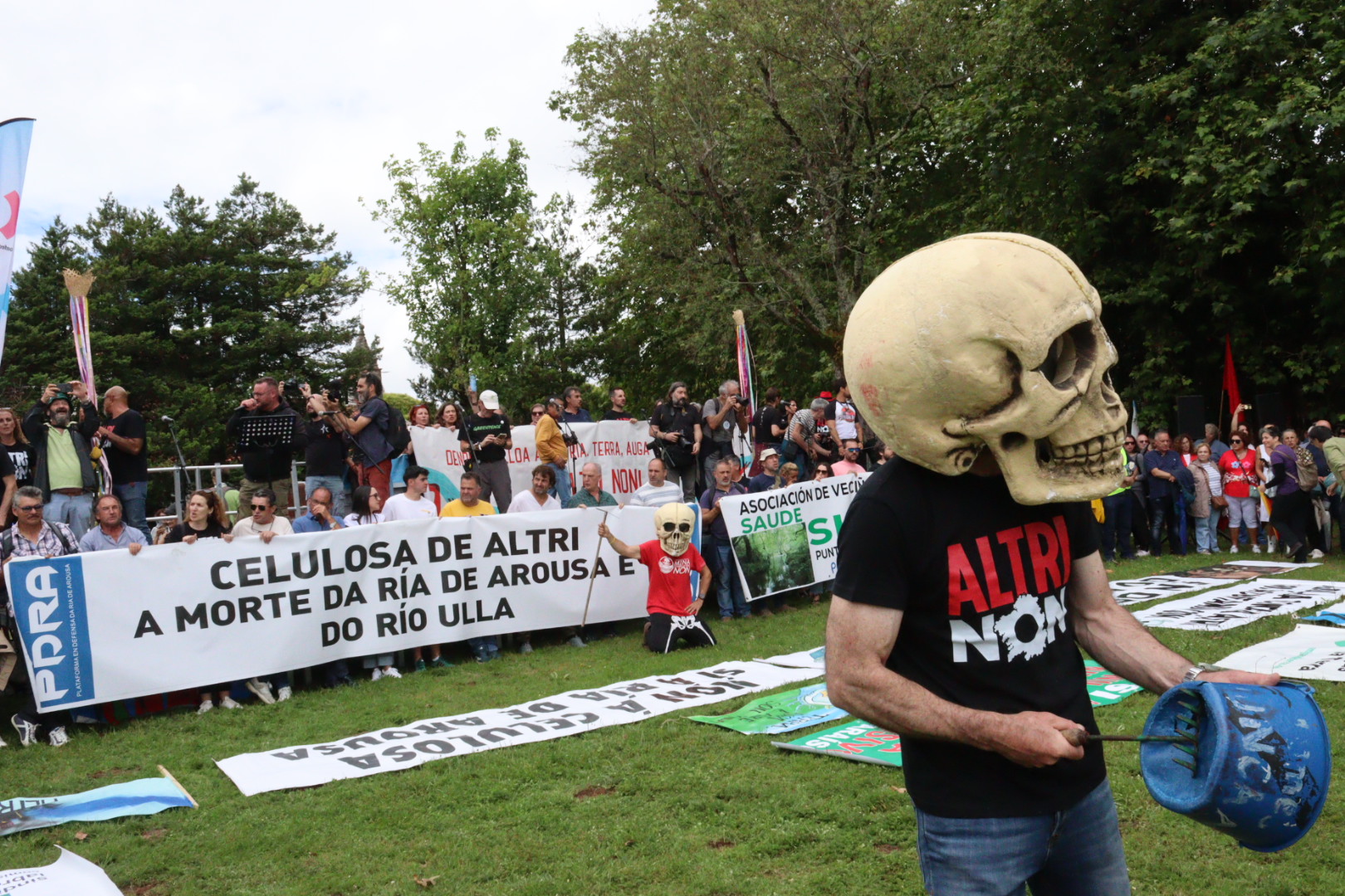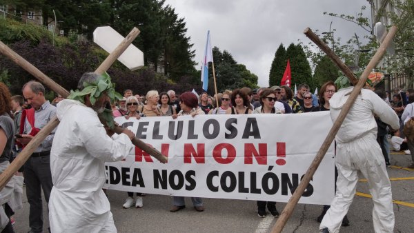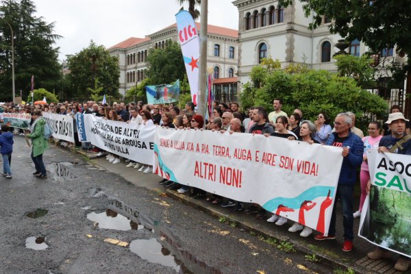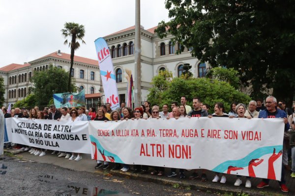 Non queremos unha ferida no noso país. Non queremos a macrocelulosa que Altri, Greenalia e a Xunta queren chantar no corazón de Galiza. Non queremos un monstro que mastigue eucalipto para vomitar 400.000 toneladas de celulosa, non queremos unha samesuga xigante que absorba 46 millóns de litros de auga do Ulla ao día e devolva unha parte sucia e quente, non queremos 100.000 toneladas de gases efecto invernadoiro, non queremos unha bomba ambiental que afogue o río e dane aínda máis o mar da Arousa. Non queremos Altri!