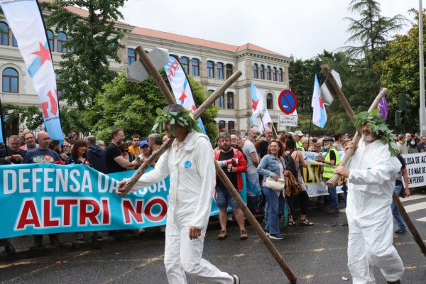 Seguimos favorecendo o reparto do ben que nos da a terra, o río e o mar. O modelo da celulosa de ALTRI e da MINA DE TOURO, non ten en conta o territorio, nin a xente, nin a nosa forma de vida e cultura… é un modelo colonial onde espolias os bens dun lugar e marchas cando a o teto está seco, deixando atrás unha terra queimada. Destrúe o noso emprego, favorece o cambio climático, contamina o medio do que vivimos e arruína a nosa soberanía alimentaria. Ese é o modelo que impulsa e publicita o goberno da Xunta de Galiza. As persoas que vivimos nesta terra non lle importamos nada.