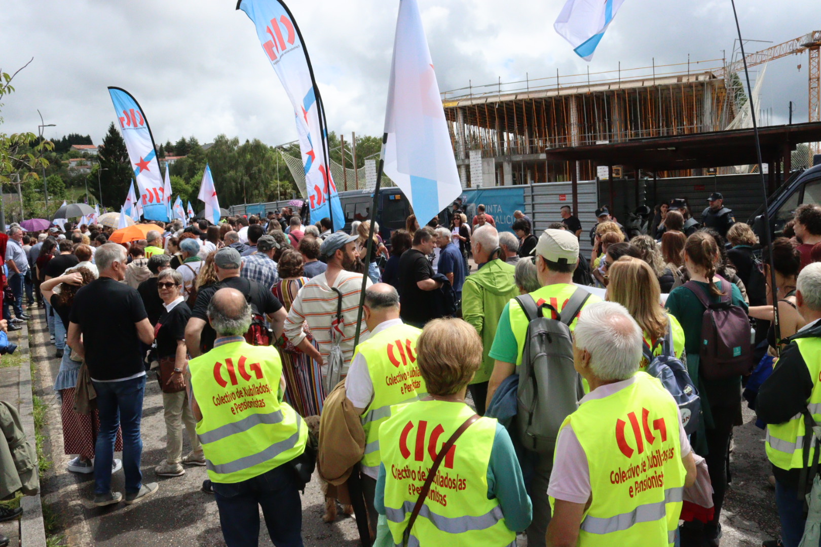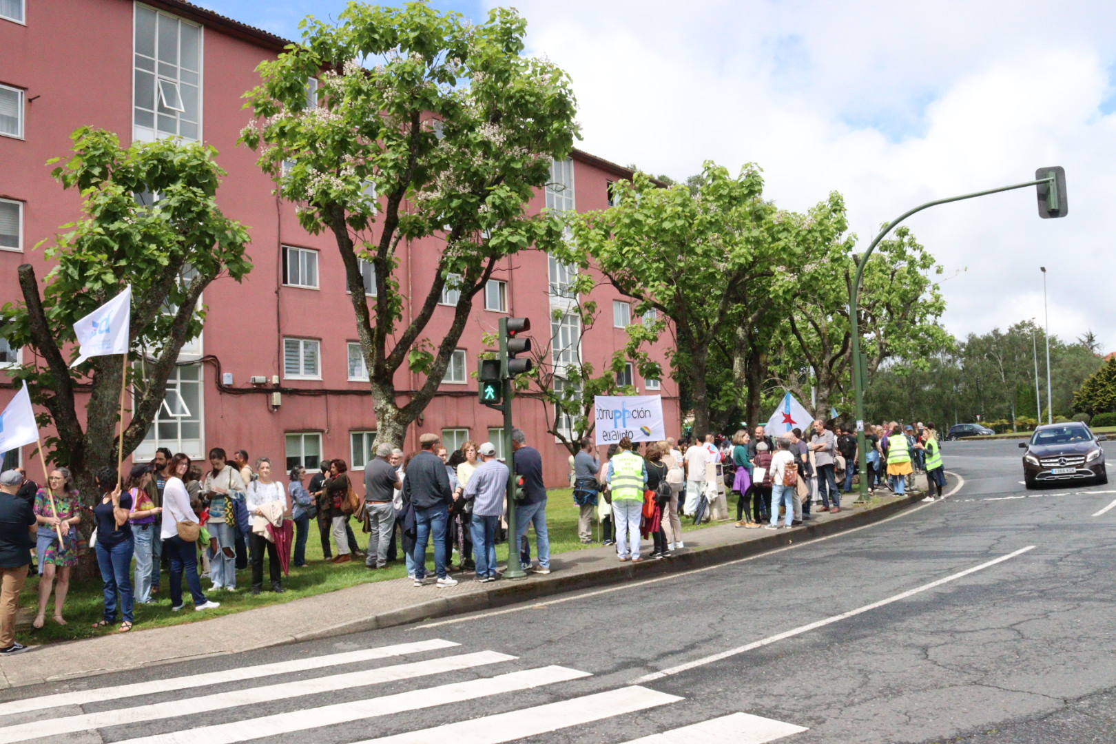 Hoxe estamos aquí rodeando a sede do poder galego, veciñas e veciños, amigas e amigos.