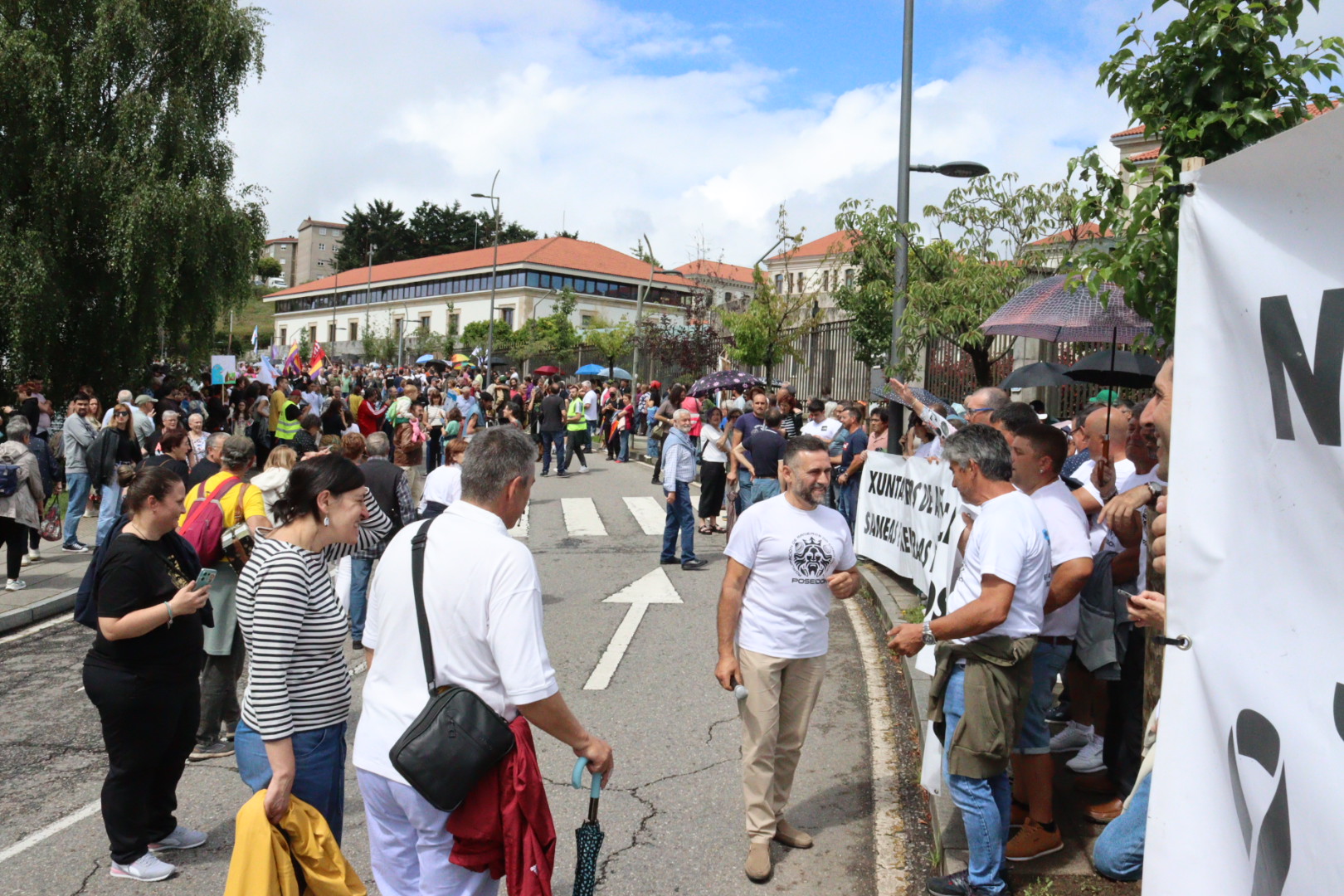 Despois de realizar a cadea humana, que deu á volta arredor do complexo administrativo de San Caetano, na explanada diante da porta principal da Xunta de Galiza procedeuse a dar lectura a un manifesto que pasamos a reproducir. O acto rematou cunha pequena actuación musical.