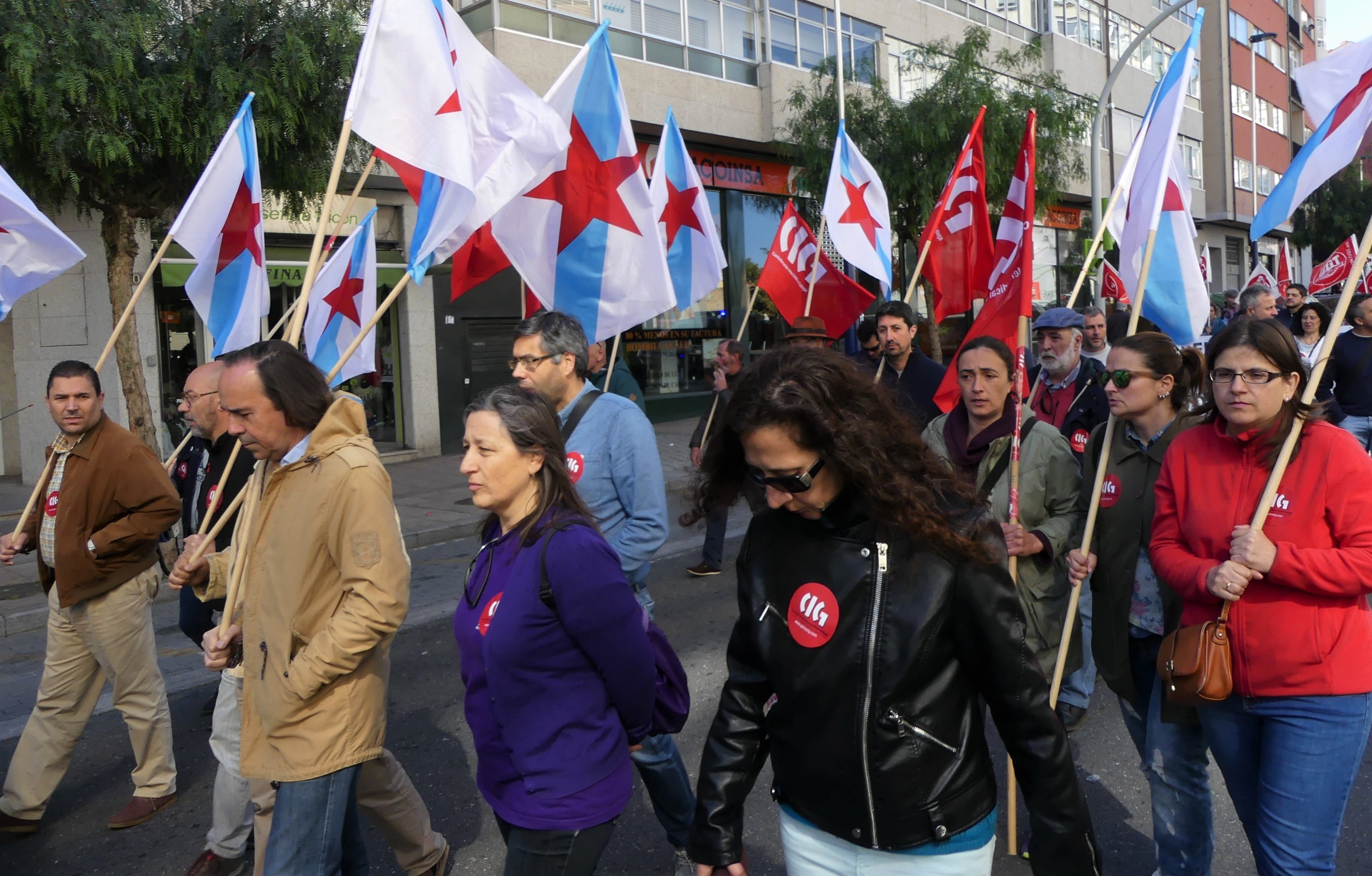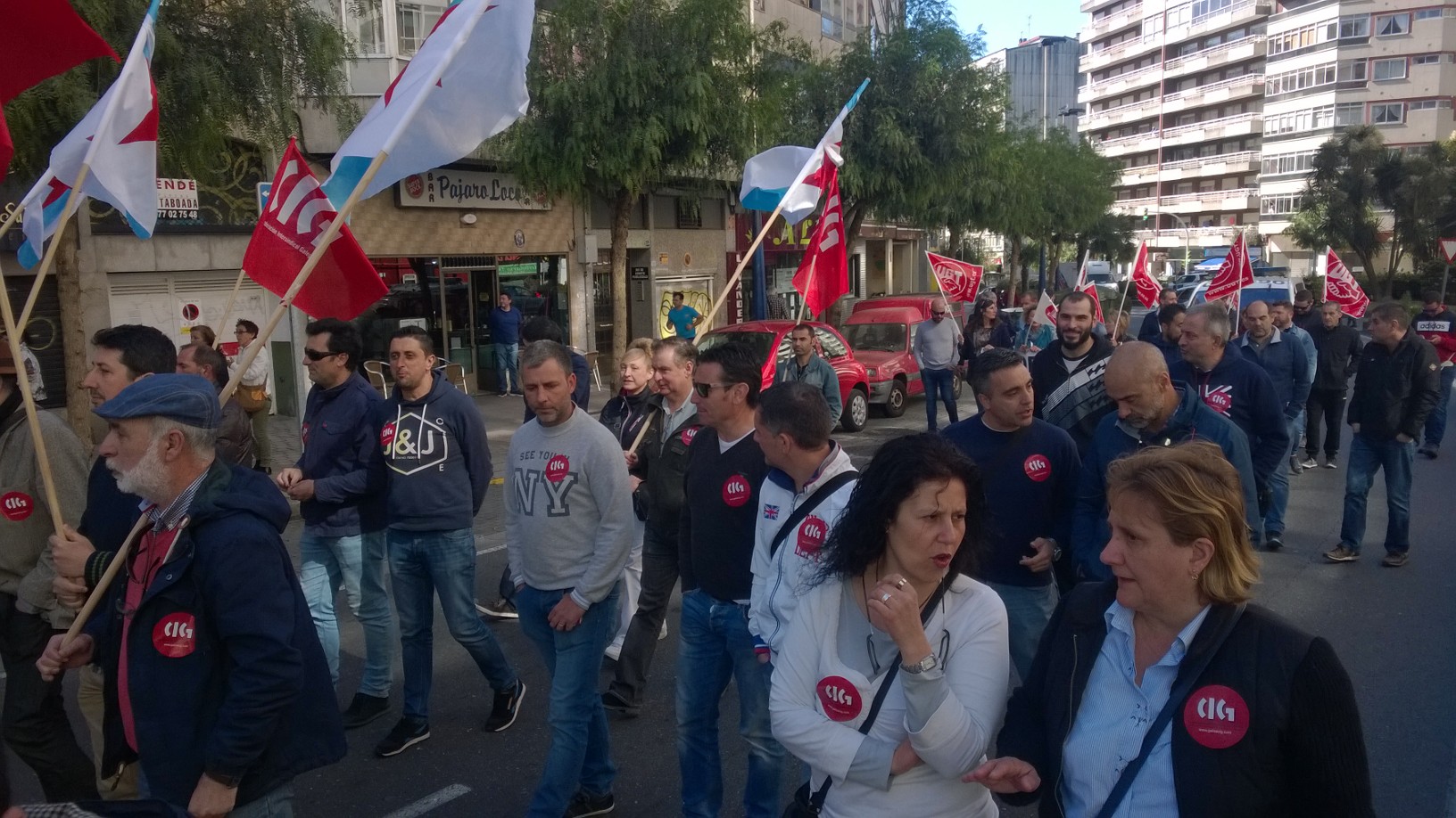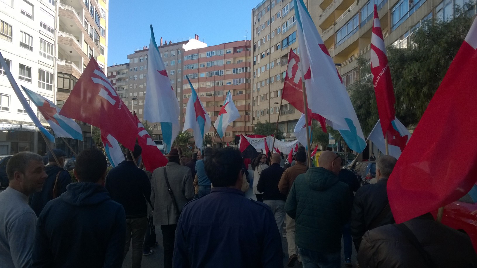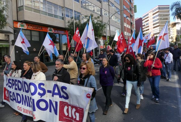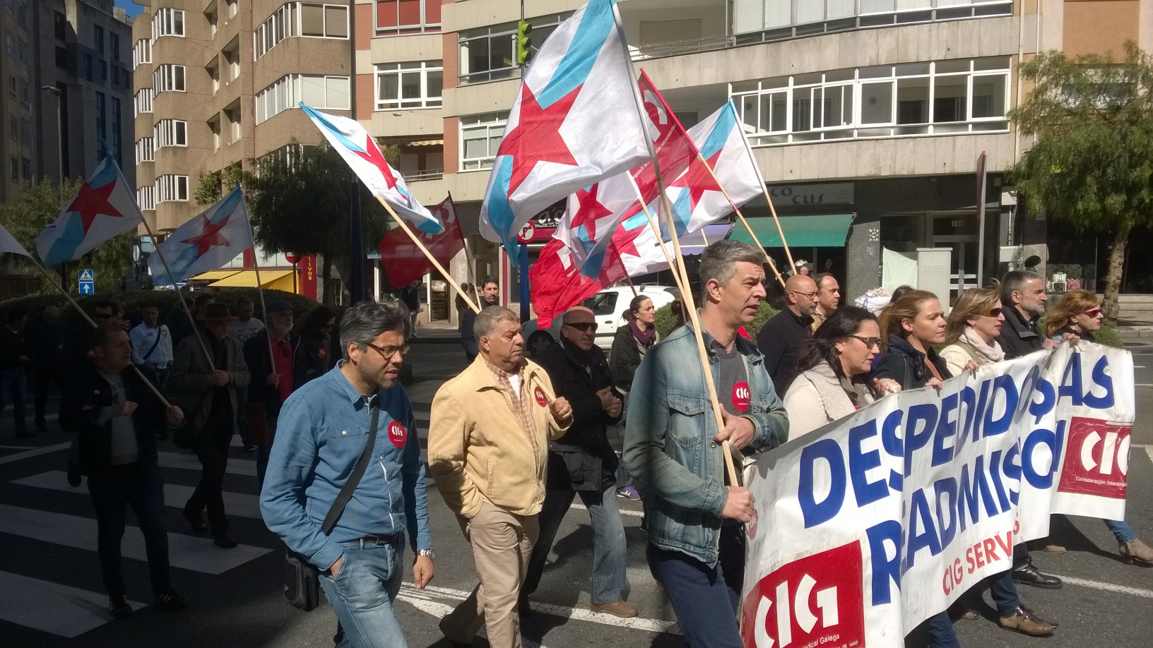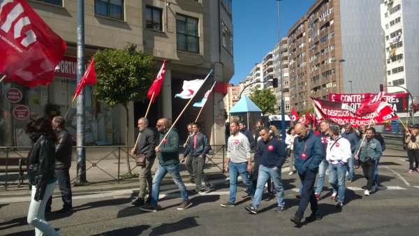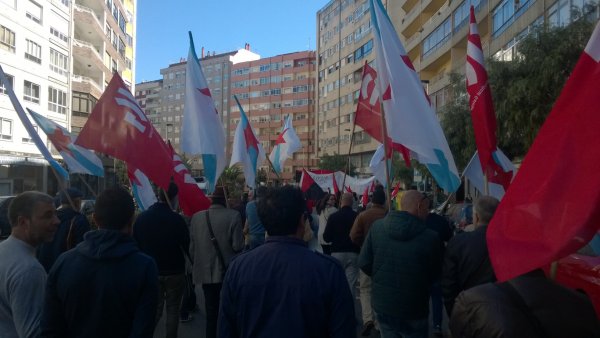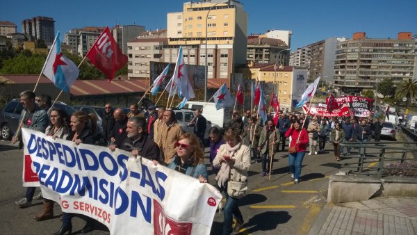 Tanto durante o percorrido como unha vez diante das oficinas berráronse consignas contra a represión laboral e os despedimentos e reclamouse a readimisión dos oito traballadores/as afectados/as. Con esta protesta os sindicatos danlle continuidade ao calendario de mobilizacións iniciado tempo atrás.