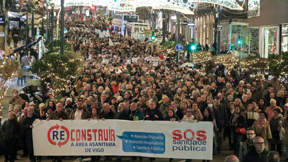 Unha multitudinaria manifestación chama en Vigo a “reconstruír” a área sanitaria para garantir unha asistencia 100% pública e de calidade