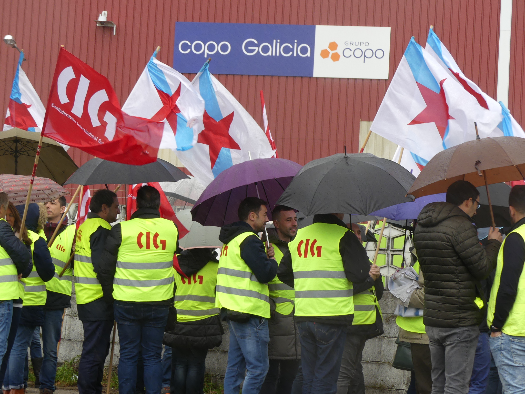 Os representantes sindicais da central nas principais empresas do sector do automóbil concentráronse diante da sede de Copo no concello pontevedrés de Mos ás 11:00 horas, onde despregaron unha faixa esixindo a readmisión dos despedidos no Centro Tecnolóxico do Grupo Copo (CETEC) e berraron consignas como “Non máis despidos no Grupo Copo”, “Carlos e Nacho somos todos”, “Copo, escoita, a CIG está en loita” e “Traballo digno na automoción”.