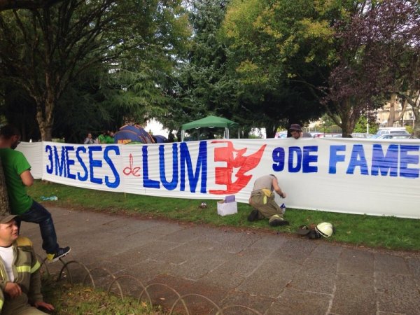 Unha vez rematadas as intervencións, os asistentes á mobilización celebraron un xantar popular, tras o que iniciaron a instalación do campamento no que permanecerán 24 horas diarias até o vindeiro venres día 23 de setembro.