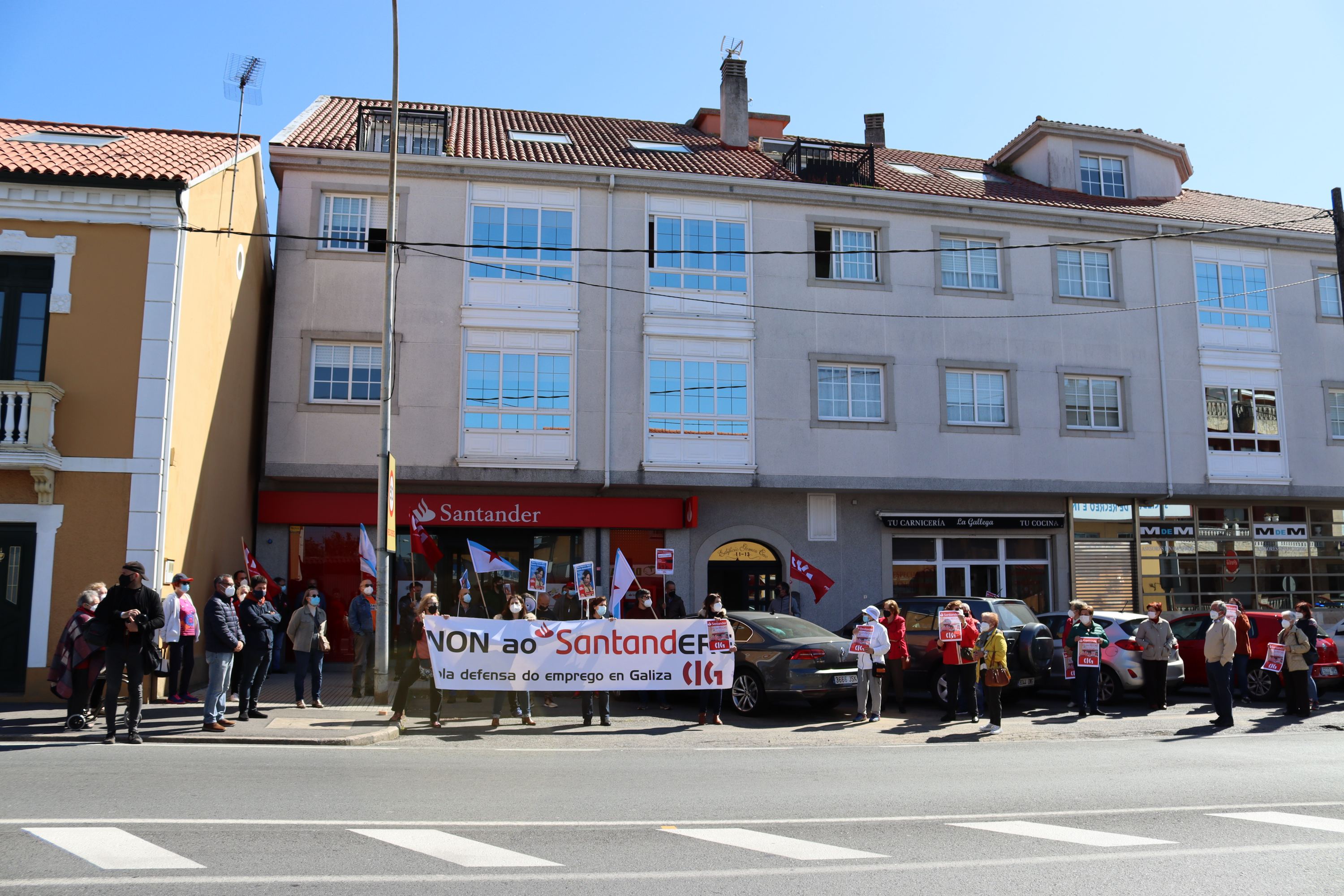 A CIG mobilizouse este mércores en rexeitamento á decisión do Banco Santander de pechar a oficina que ten en Guísamo, deixando así á localidade sen servizos financeiros. Á protesta tamén se sumaron veciños e veciñas afectadas pola decisión empresarial e representantes da Corporación municipal de Bergondo que esixen a continuidade da actividade desta sucursal.