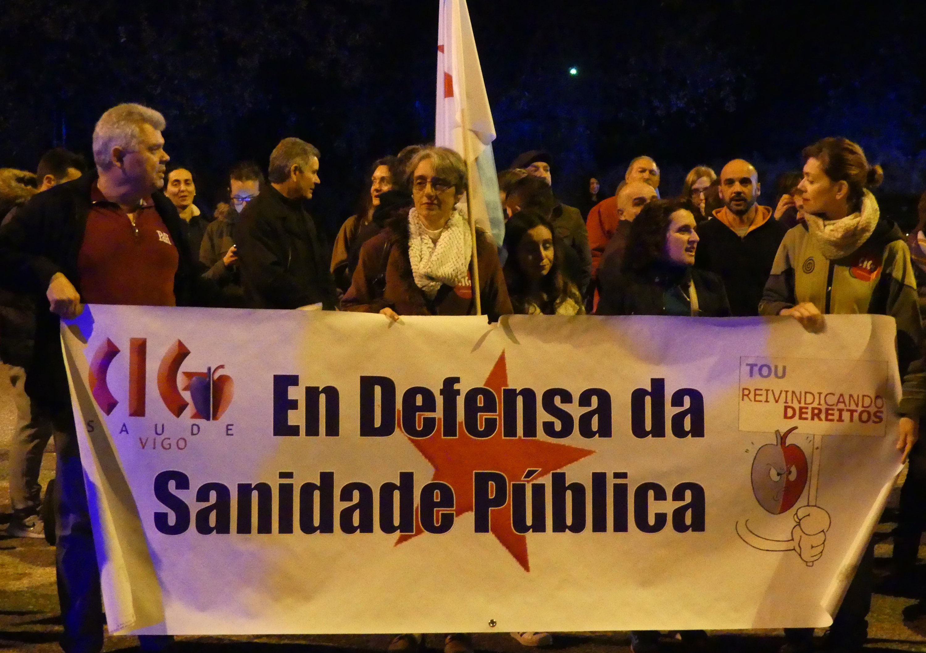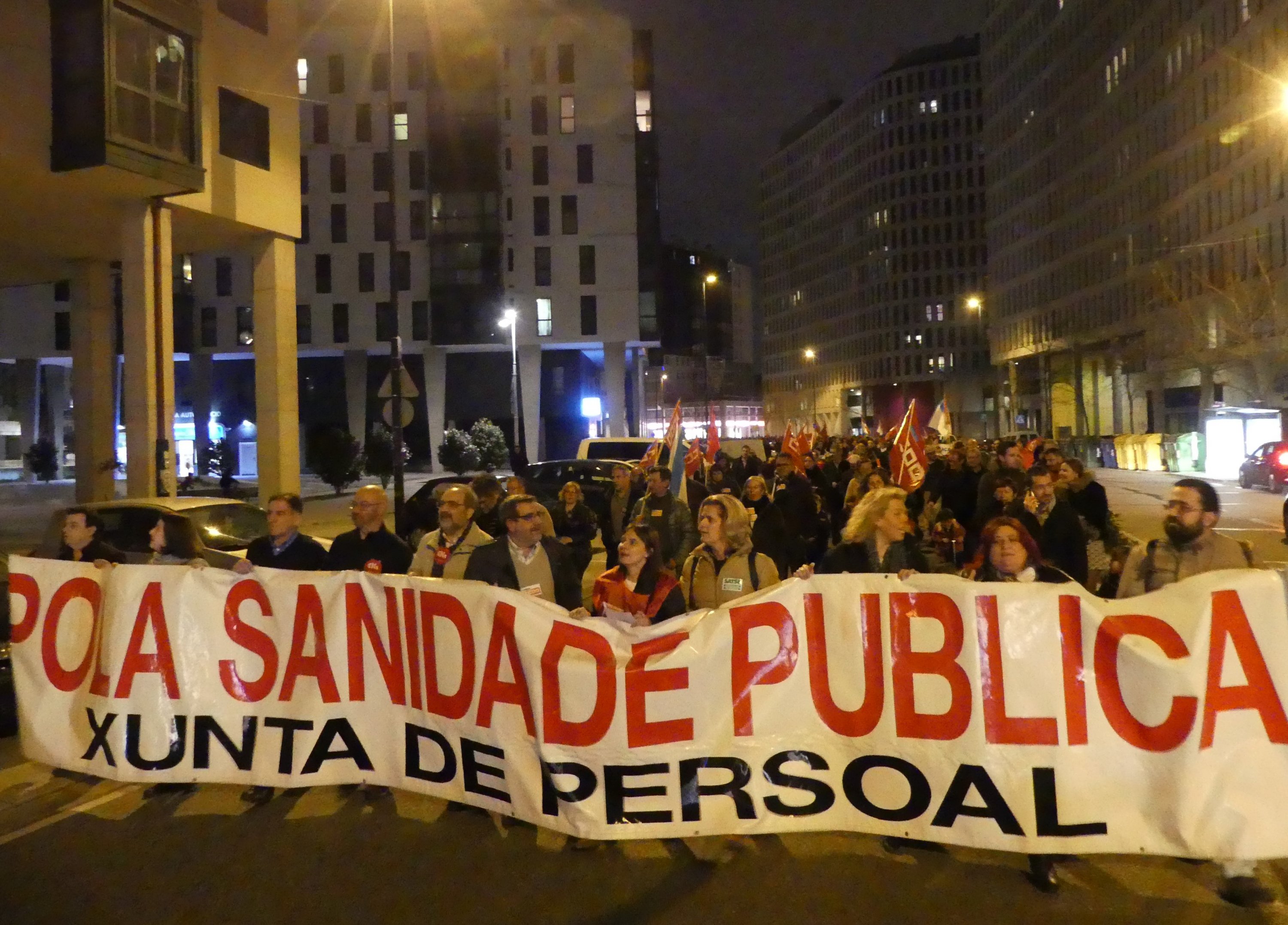 A marcha arrincou pasadas as 19.00 horas da rúa Teixugueiras e rematou diante do centro de saúde tras facer un percorrido pola zona. Durante o traxecto, no que participaron veciños/as da parroquia, profesionais da sanidade e representantes sindicais e políticos, berráronse consignas como “Máis traballadores e menos directores”, “Felix Rubial, máis persoal” ou “A sanidade non se vende, deféndese”.