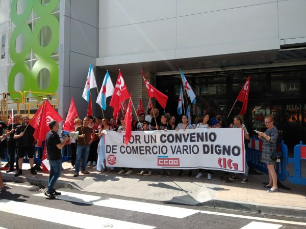 O persoal do comercio vario (que regula as condicións laborais de grandes empresas do sector como Inditex, Cortefiel ou Mango) leva máis de dous anos e medio cos salarios conxelados, pero a patronal só ofrece subas por debaixo do IPC e sen cobrar os atrasos.
