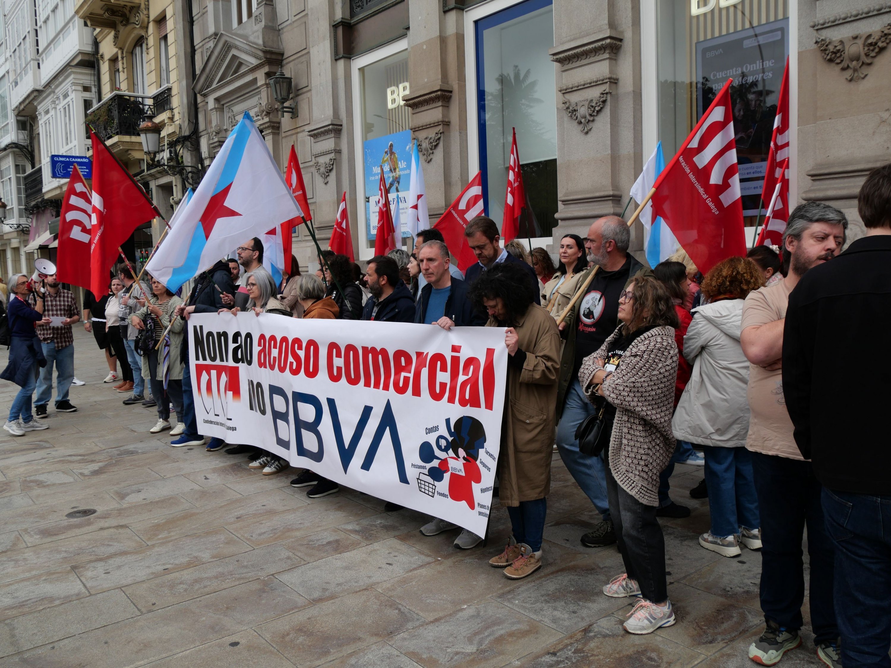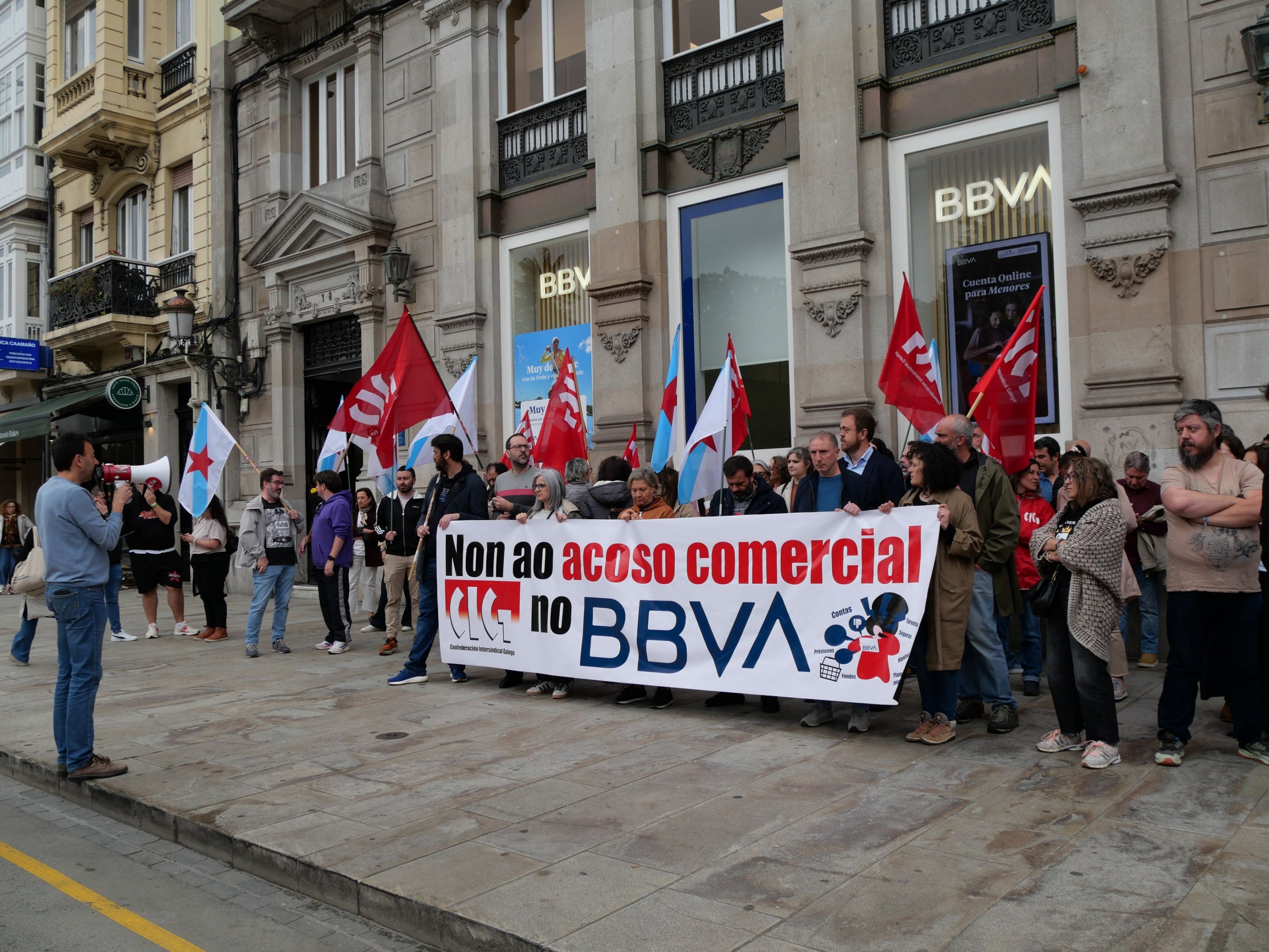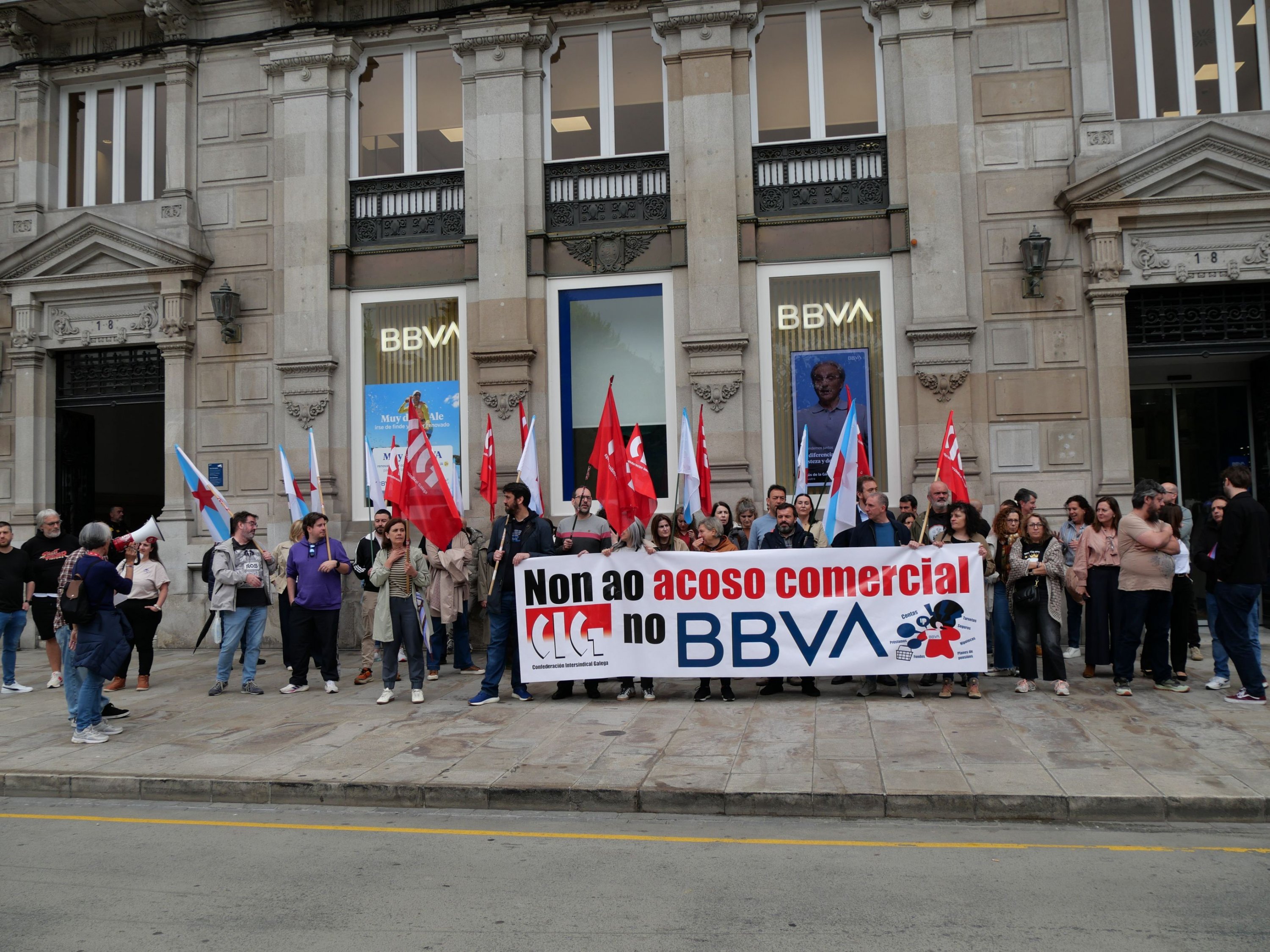 Xornada de protestas contra a presión comercial no BBVA, os despedimentos no Santander e a represión sindical en Abanca