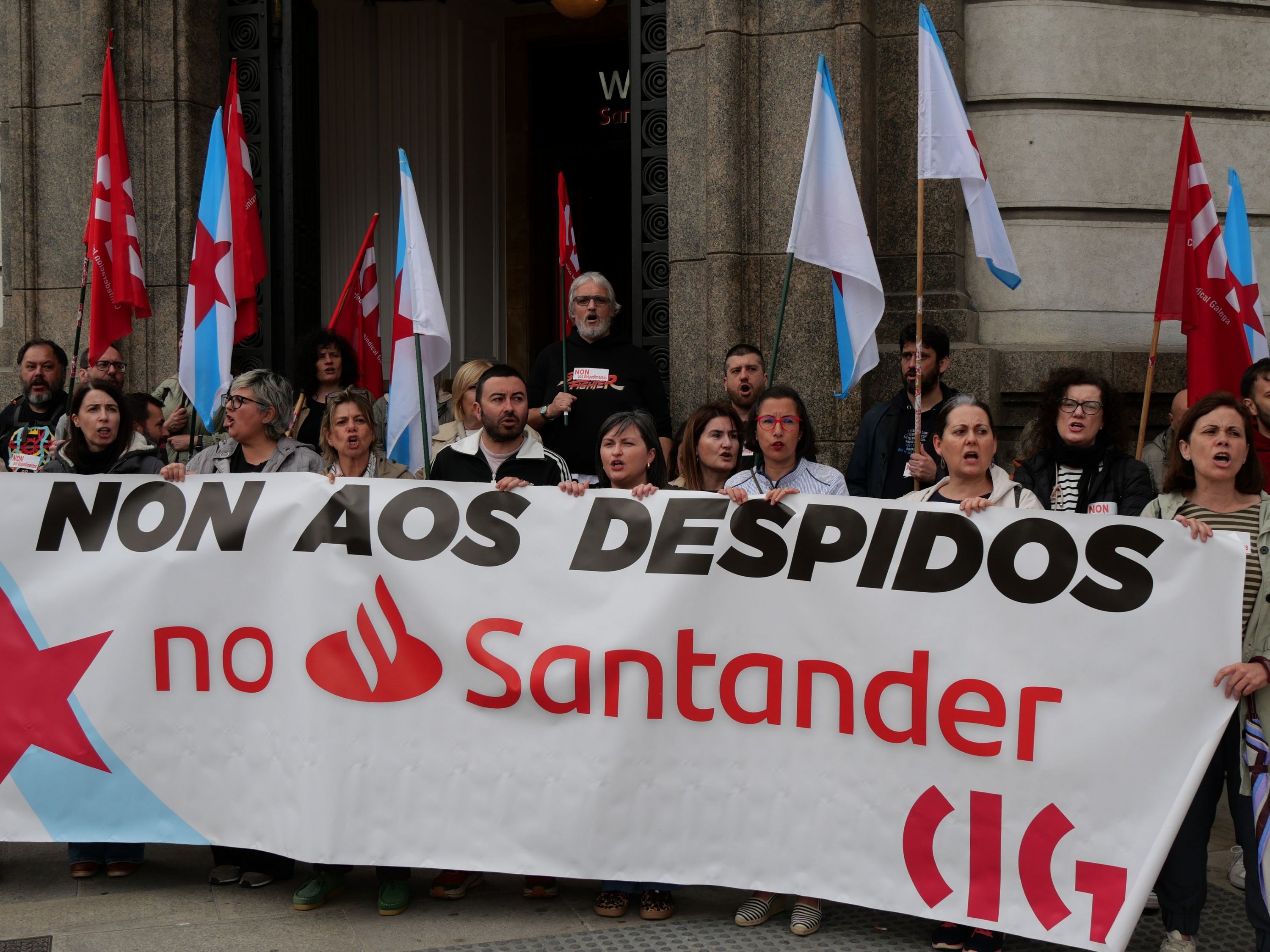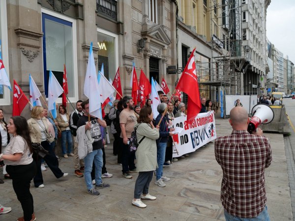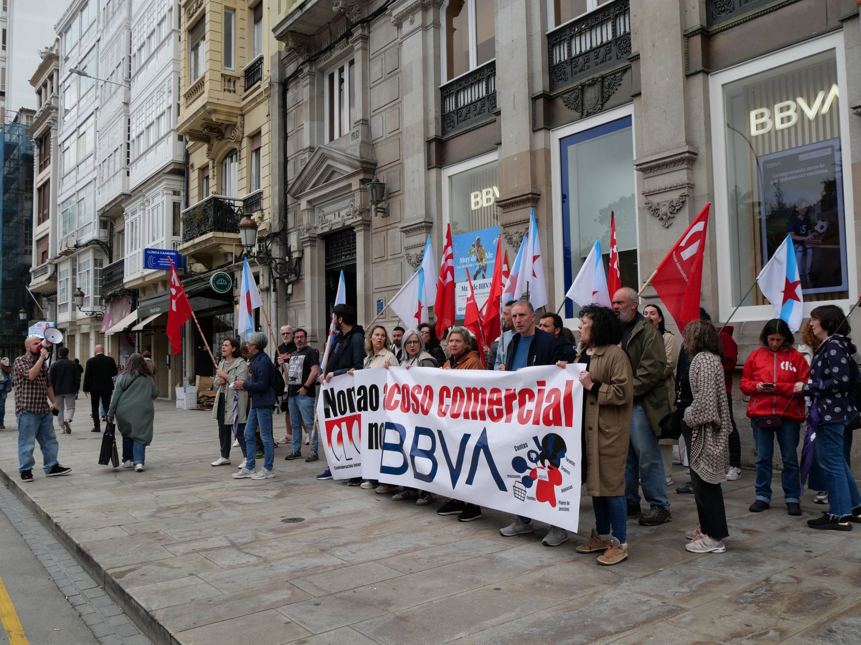 Xornada de protestas contra a presión comercial no BBVA, os despedimentos no Santander e a represión sindical en Abanca