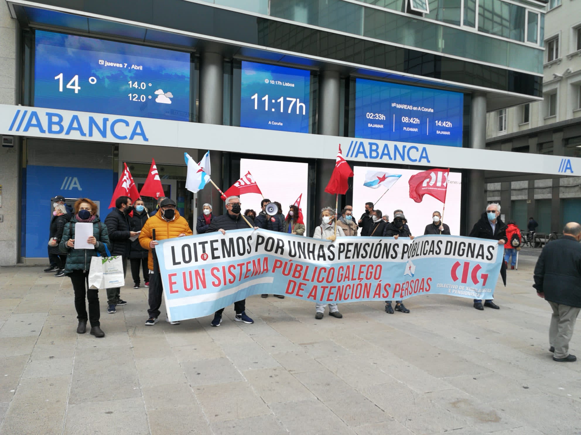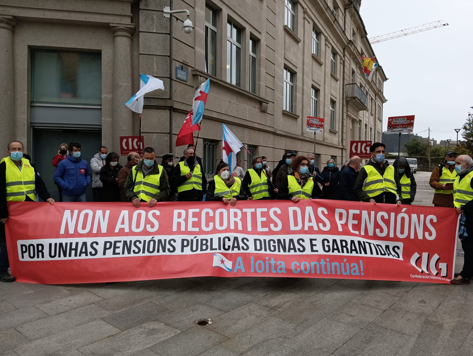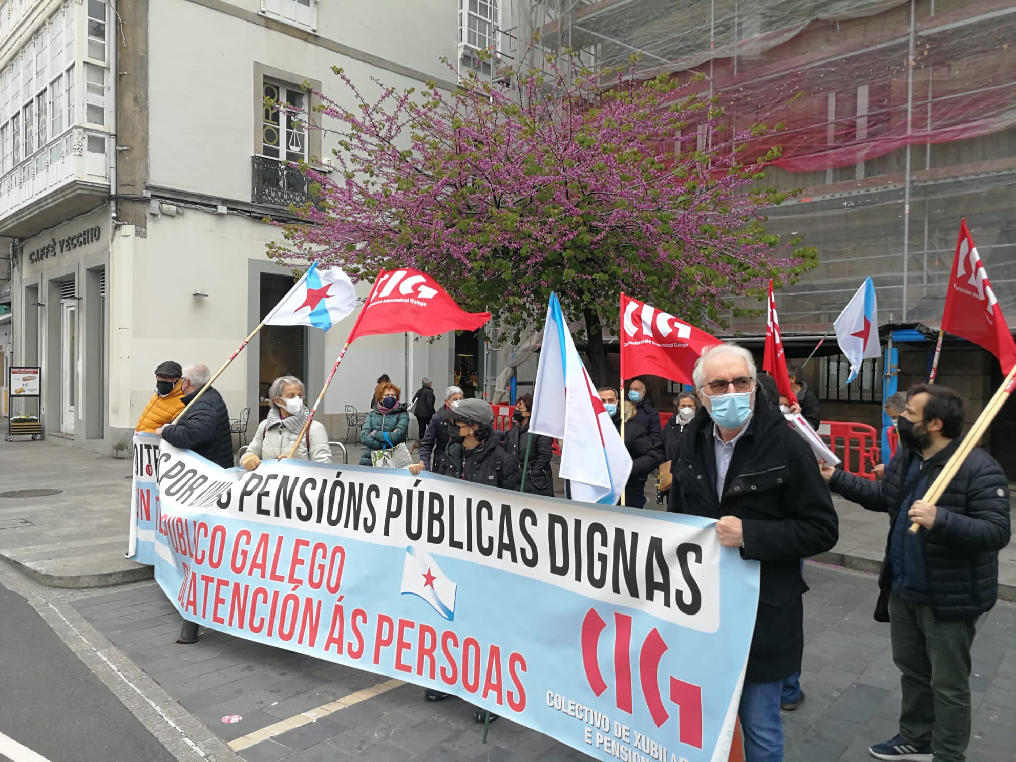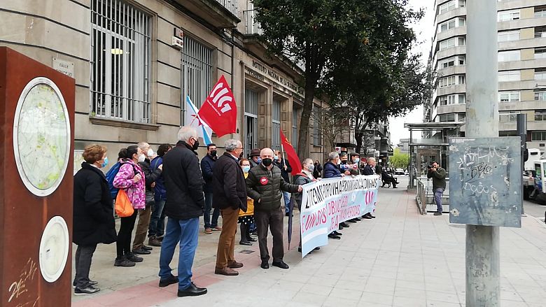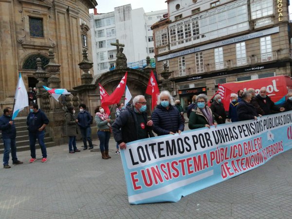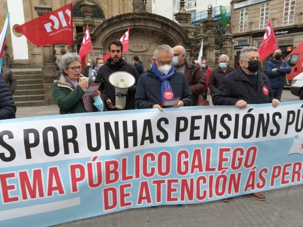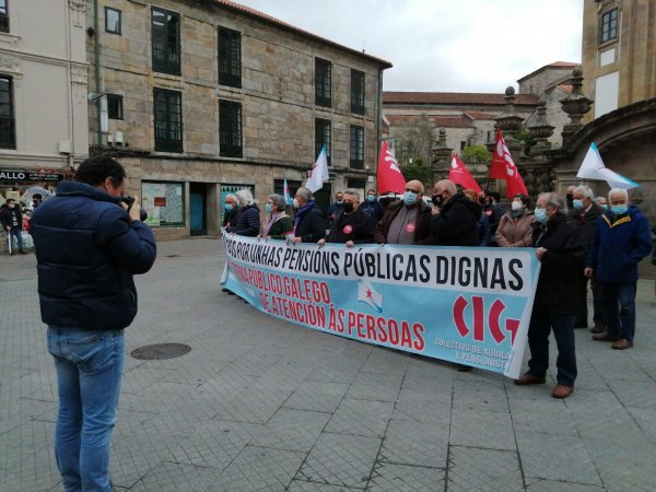 O colectivo de persoas xubiladas e pensionistas da CIG mobilizouse esta mañá, en todas as cidades galegas, en defensa das pensións públicas, para denunciar que por mor da reforma das pensións, dos abusos da banca, da falta dun servizo público de atención ás persoas e das deficiencias da sanidade pública que dificultan garantir unha atención sanitaria digna, as súas vidas están cada vez máis empobrecidas e precarizadas.