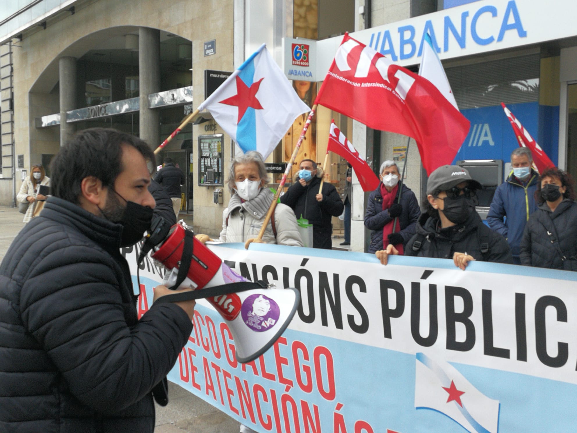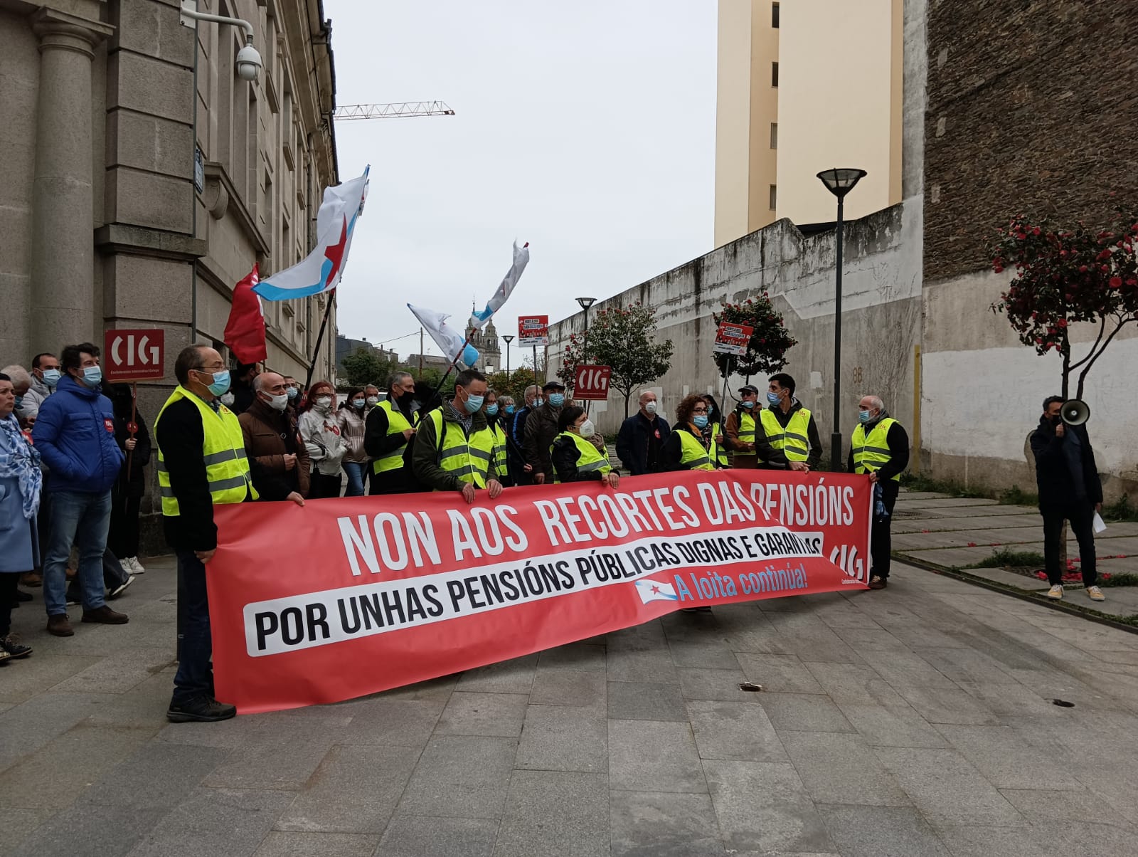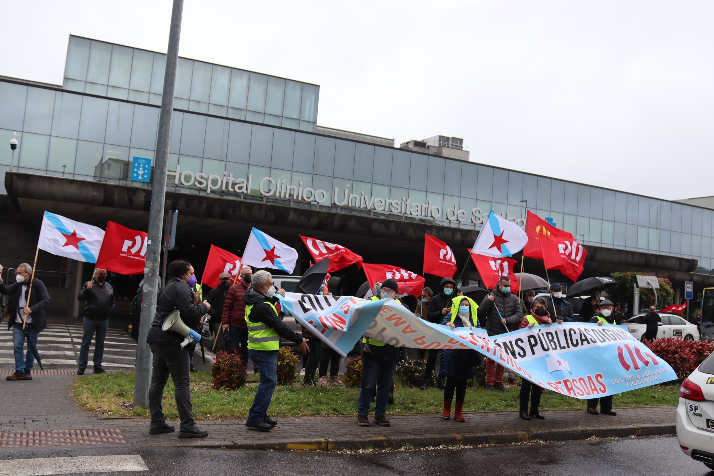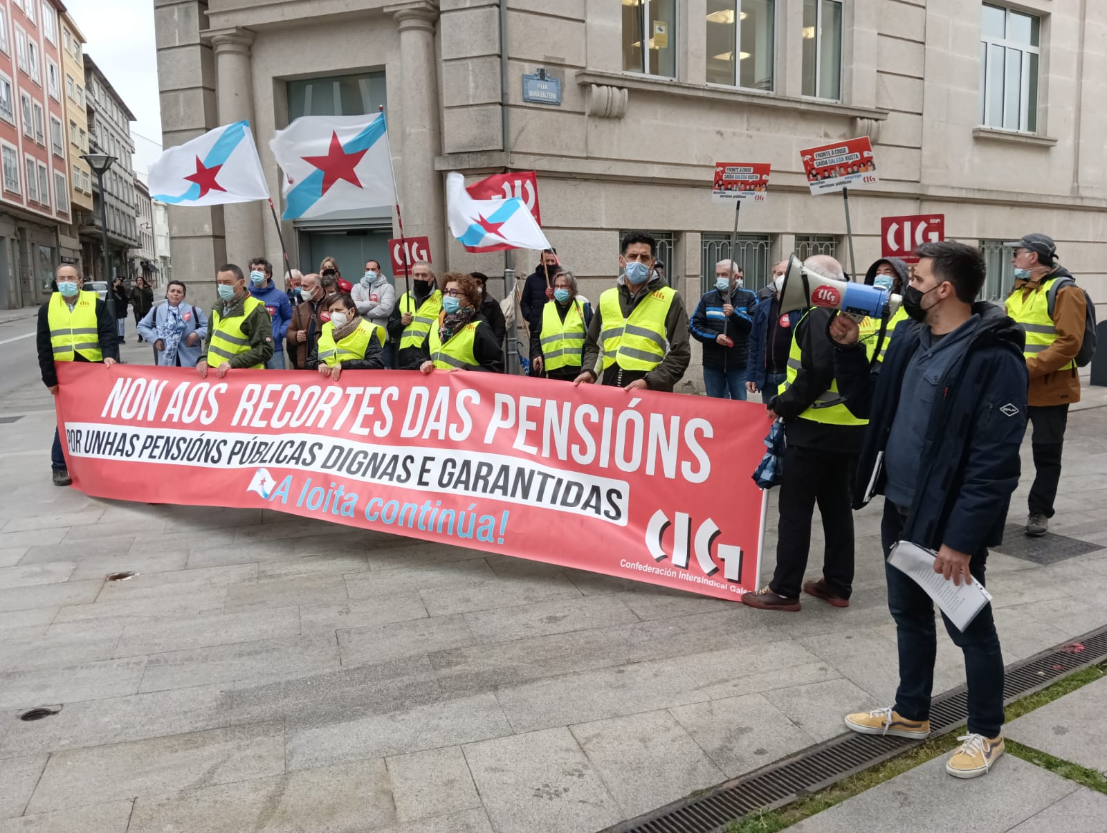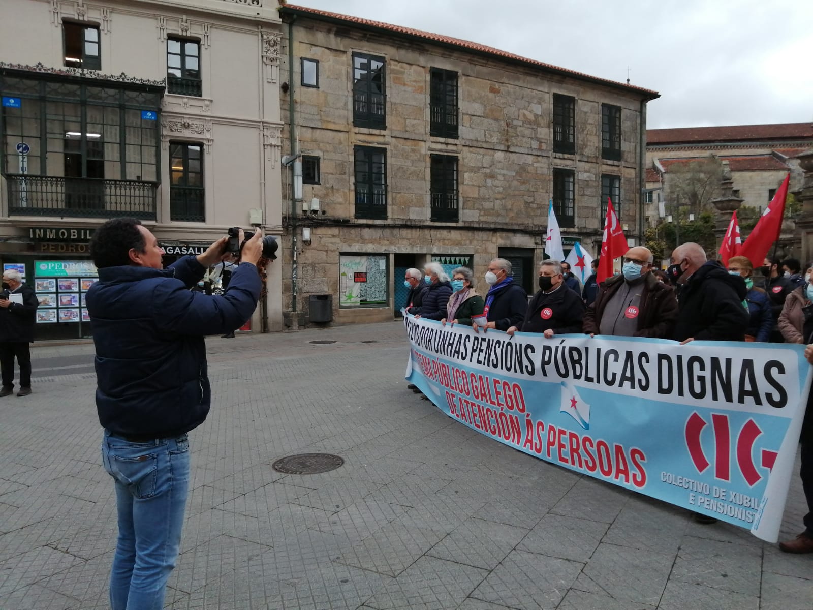 O colectivo de persoas xubiladas e pensionistas da CIG mobilizouse esta mañá, en todas as cidades galegas, en defensa das pensións públicas, para denunciar que por mor da reforma das pensións, dos abusos da banca, da falta dun servizo público de atención ás persoas e das deficiencias da sanidade pública que dificultan garantir unha atención sanitaria digna, as súas vidas están cada vez máis empobrecidas e precarizadas.