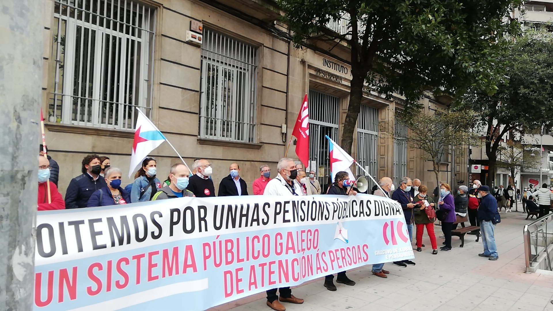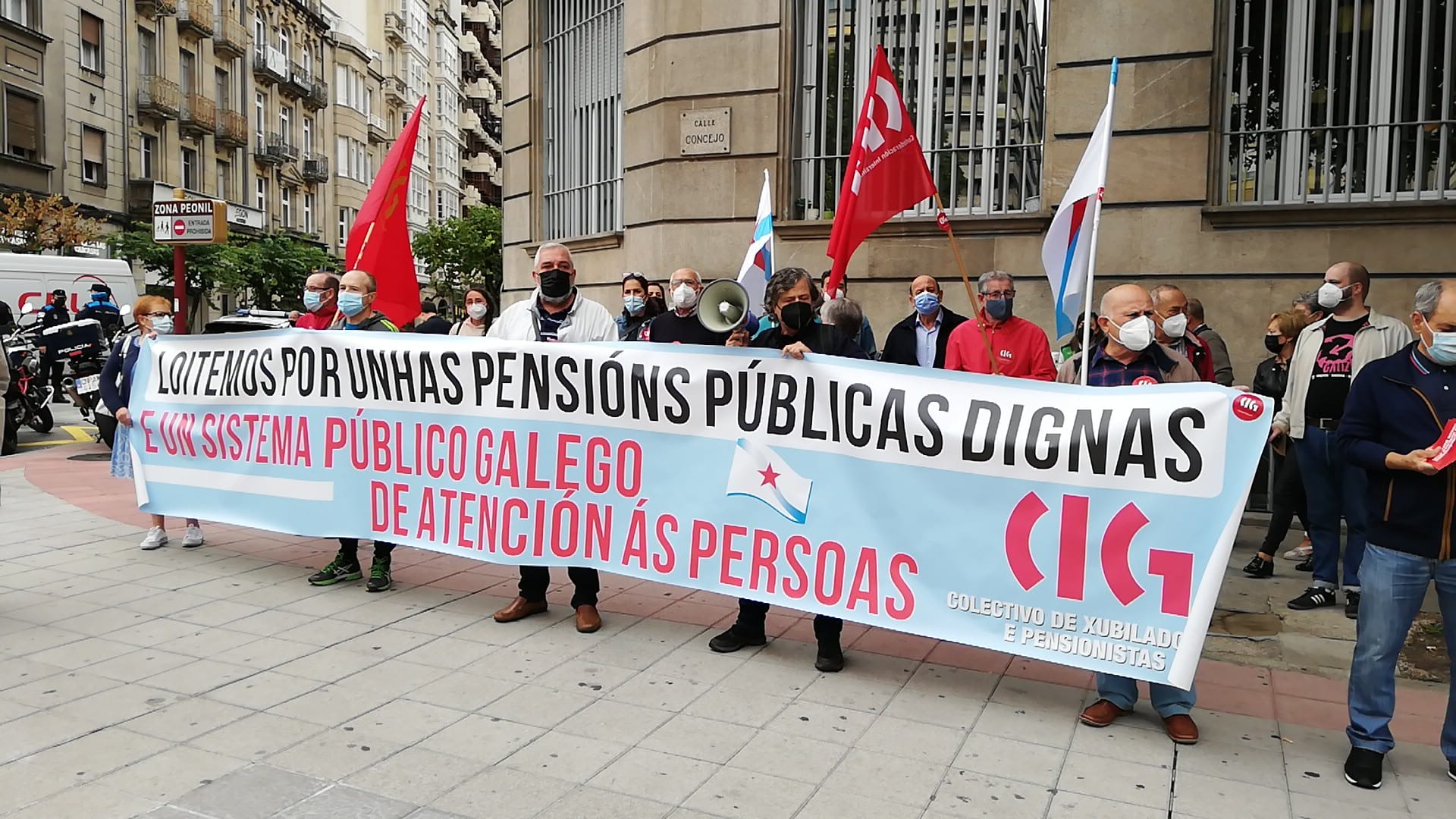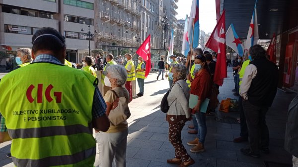 Xubilados/as e pensionistas da CIG concentráronse esta mañá nas sete cidades e Bueu para protestar contra a reforma das pensións que se está a tramitar no Congreso dos deputados, porque “non garante unhas pensións dignas e consolida os recortes que supuxeron unha redución das pensións en 2011”.