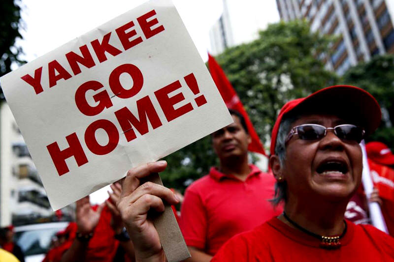 - James PetrasAsí como Estados Unidos recorre a unha única “vía” (golpes militares e invasións) para esmagar os gobernos populares pequenos e máis vulnerábeis, utiliza unha estratexia de “múltiples vías” cos grandes países poderosos. No primeiro caso é suficiente unha chamada ao exército ou o envío dos marine para acabar cunha democracia electoral. No caso de países poderosos, EUA utiliza unha estratexia de múltiples axentes que inclúe o bombardeo propagandístico nos medios de comunicación e, catalogar a demócratas como ditadores, extremistas, corruptos, ameaza para a seguridade, etc.