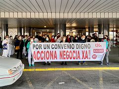 Persoas traballadoras do sector mobilizáronse hoxe en Vigo e na Coruña para reclamar condicións de traballo dignas e o cumprimento do pactado